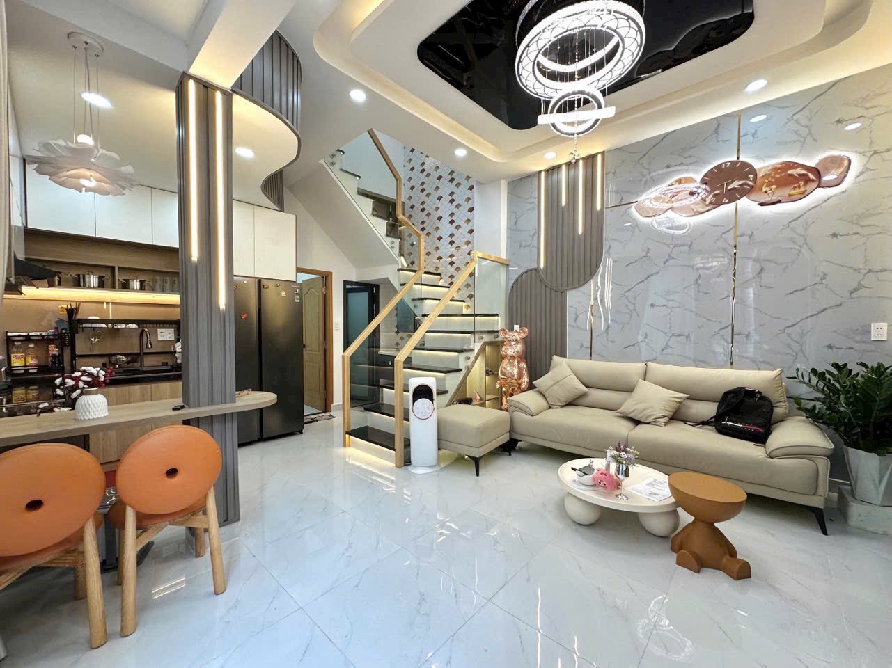 Diện tích: công nhận đủ trên sổ 38m2 ( 7.9×5 ) A4, Nở hậu nhẹ 8m. + Kết cấu: Trệt lầu hoàn công đủ. + Nhà được gia chủ tự tay thiết kế: Khách, bếp mở, 3 Phòng ngủ, 3 vệ sinh. Có phòng dưới trệt cho người lớn tuổi, lấy sáng, gió mỗi phòng. Có bancong cafe, trồng hoa. + Nhà mới full nội thất đẹp như ảnh cho khách thiện chí. + Hẻm 3m, cách 1 căn ra ô tô, gần mặt tiền, Thông khu biệt thự Lam Sơn. + Sổ sạch, pháp lý chuẩn, công chứng ngay. #nhangopbank